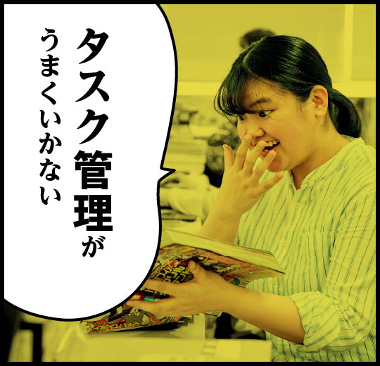 作家さんとの打ち合わせや雑誌の校了作業に加え、グッズの監修やアニメ・ゲームの確認など様々な業務に関わっており、さらに新人が担当する雑誌の記事ページや雑務仕事をやっています。そんな週刊誌のペースについていけず、いつもタスクが山盛りに。一日がメールや電話対応だけで終わったり、雑誌の進行作業に追われて受動的な行動しかできず、「漫画を読む」段階にも至っていない自分は編集者に向いていないのではないかと悩んだほどです。そこで小さな「できた」を自信に変えようと、まずはタスクを洗い出してリスト化しました。終わったタスクには線を引いて「できた」ことを可視化。すると次第にポジティブなところに目を向けられるようになりました。